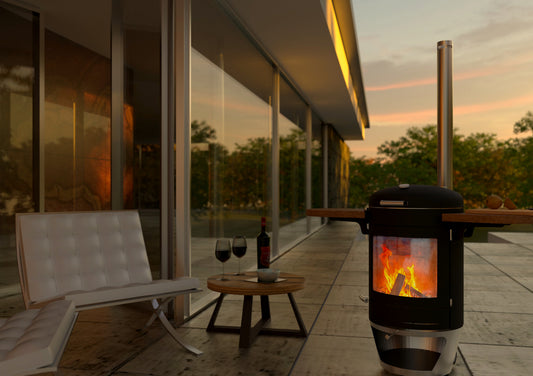 In contrast to various outdoor heaters and especially fire pits, The Hestia Heat & Grill Collection affords a substantial yet shielded view of the fire. This not only cultivates an incredibly atmospheric ambience but also diminishes the necessity to relocate in response to shifting winds. All emissions are directed up the flue, sparing everyone and everything from being enveloped in smoke clouds – a groundbreaking feature for a wood-fueled outdoor heater. This constitutes a secure method of relishing an outdoor fire, with the advanced technology ensuring that the glass remains clear and the flames remain captivatingly visible.